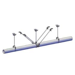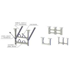 The assembled support and hanger system includes the support form of the horizontally-oriented pipeline: single-tube, double-tube and multi-tube combination, and the vertical-type pipeline support form: single-pillar bracket, double-pillar bracket, adjustable sliding bracket, sliding guide Supporting and hanger, vibration-isolating anti-vibration hanger, truss multi-layer gantry hanger, single-suspension pipe hanger combination and hybrid multi-layer gantry hanger combination.