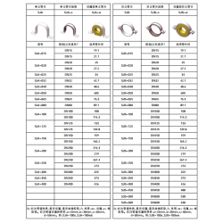 单提升夹,单提升夹,绝缘单提升夹; 双提升夹,双提升夹,绝缘双提升夹; 双垂直风管管夹,双立式风管夹垫; 可调式空气管夹,可调式空气管夹钳; 可调式管夹,可调式管夹垫,保温可调式管夹; 吊管夹垫,绝缘式可调管夹; 悬挂管夹,悬挂管夹垫片; 滚子悬挂管夹; P管夹,P管夹垫,绝缘型P管夹; 塑料管,HDPE管夹; U形管夹,U形管夹,绝缘U形管夹; 塑料管,HDPE管夹; 滑管支撑; 导管支撑。