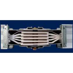 单螺栓连接器:放弃传统设计,单螺栓夹紧结构使安装快速可靠,安装速度是传统连接器的两倍。双头固定扭矩螺栓确保连接所需的压力,特殊的碟形弹簧确保连接表面之间的压力恒定。提供温度指示模块,以确保在系统出现故障且温度过高时可以提醒系统。连接汇流条的横截面是汇流条汇流条横截面的1.2倍或更多,并且接触表面是双面重叠的,这有效地降低了接触电阻。